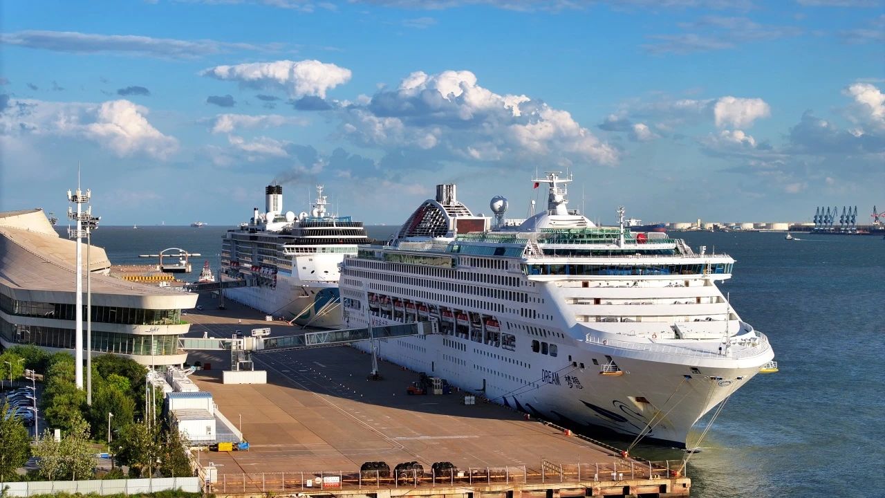 國慶假期第一天,“愛達地中海”號和“夢想”號郵輪同時停靠天津國際郵輪母港,這是自國際郵輪復航以來首次雙母港郵輪同靠,來自全國各地的3800余名游客將從天津出發開啟近一周的日韓旅程。國慶黃金周期間,天津國際郵輪母港計劃接待國際郵輪4艘次,預計進出境游客近1.5萬人次;國內客班3艘次,旅客4000余人。