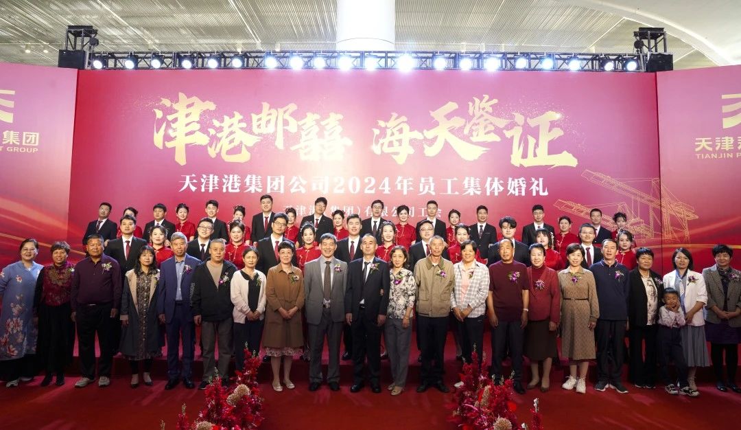 “我叫祝巖晟,站在我旁邊的是我的妻子,也是我的‘革命戰友’馬晨楠,我們都來自天津港第二集裝箱碼頭有限公司……”兩位津港青年作為新人代表發言,表達了攜手建好美滿小家庭的承諾與期待,并肩建強津港大家庭的信心與擔當。參加集體婚禮的17對新人中有的是管理崗位的骨干力量,有的是生產一線的優秀代表,有的是科工系統的技術專才,有的是醫者仁心的白衣天使,還有的是戰風斗浪的引航員和船員。在這里,他們滿懷憧憬,攜手步入婚姻殿堂;在這里,他們拼搏奮斗,為天津港注入青春正能量……